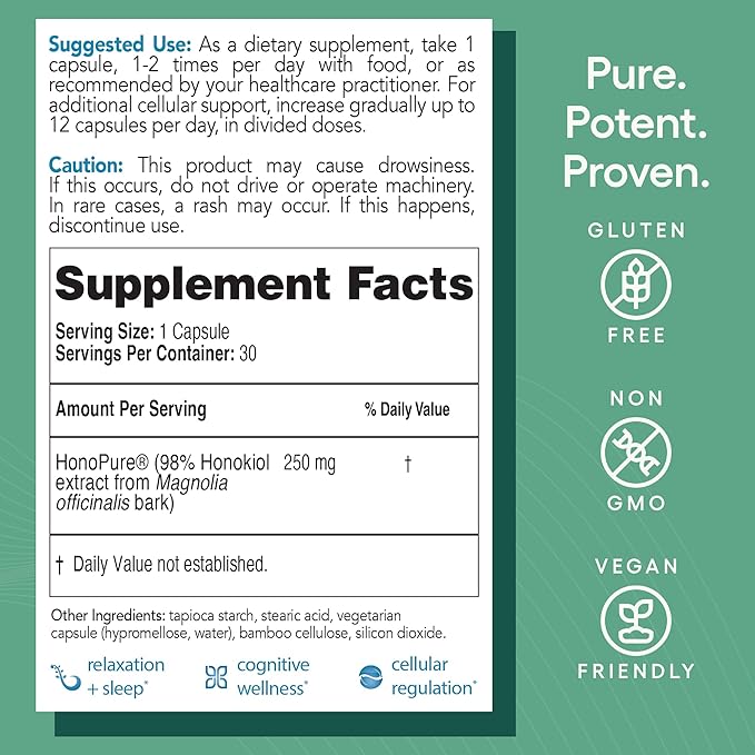 - HonoPure — Pure, Potent & Proven: HonoPure is 98% pure honokiol — the highest purity of any product in the market; an extensively researched, highly active extract purified from Magnolia officinalis bark, it provides a remarkable range of potent benefits including cognitive support, cellular regulation, relaxation, and more*