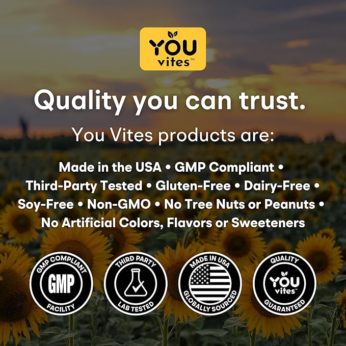 - ๐ค๐จ๐๐๐๐ง๐ฌ ๐ฌ๐ข๐จ ๐๐๐ก ๐ง๐ฅ๐จ๐ฆ๐ง - You Vites products are proudly made in the USA in GMP-certified facilities and are third-party tested. Every bottle is covered by the You Vites 30-day satisfaction guarantee.