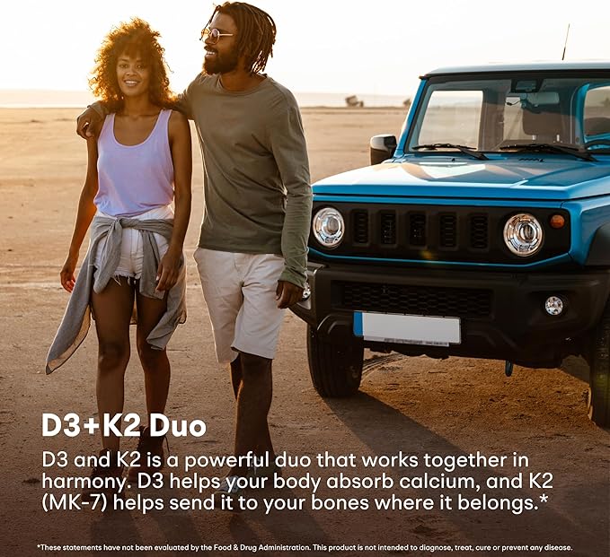 - ๐๐ฏ + ๐๐ฎ ๐ฃ๐ข๐ช๐๐ฅ๐๐จ๐ ๐๐จ๐ข - Vitamin K2 and D3 form a powerful duo that offers a range of health benefits by working together in ways that each vitamin alone cannot achieve. Summer Days D3+K2 delivers these essential nutrients in optimal amounts to enhance calcium absorption by directing it to the bones and teeth rather than soft tissues. Vitamin K2 compliments D3โs effects in cellular repair and vascular health. Each bottle offers a convenient 3-month supply.*