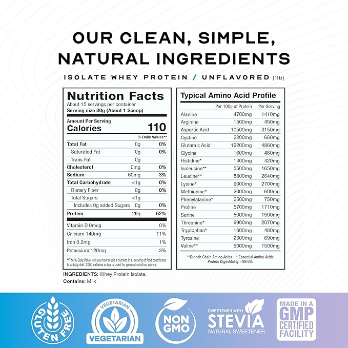 - PURE INGREDIENTS: Natural grass fed protein powder isolate is gluten-free and keto-friendly. It comes from pasture raised happy cows. Contains no fillers or artificial flavors and contains all the essential amino acids for optimal protein synthesis.