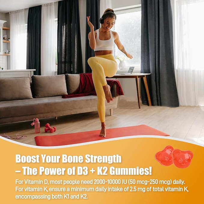 - Bone Health Support: Each serving provides 2000 IU of Vitamin D3 and 100 mcg of Vitamin K2 (MK-7), a powerful combination that helps your body absorb and utilize calcium more effectively, supporting strong and healthy bones