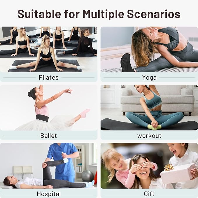 - Non-Slip Grip:Our non-slip Pilates socks for women feature unique silicone dots on the soles, providing exceptional grip for stability and safety during Pilates, yoga, barre, ballet, gym sessions ,hospital rehabilitation and more. Enjoy confidence in every move!