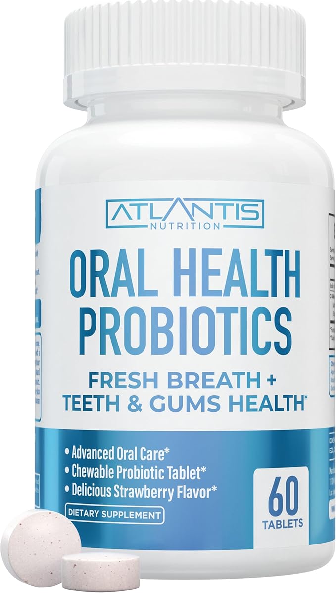 - Advanced Dental Probiotics for Teeth and Gums – Atlantis Nutrition’s Oral Probiotic tablets feature a powerful 3 Billion CFU Probiotic Blend, including Lactobacillus paracasei, Lactobacillus reuteri, and Bifidobacterium lactis, designed to support gum health, dental hygiene, and fresh breath. These probiotics are perfect for chronic bad breath treatment and maintaining a healthy balance of good bacteria in the mouth.