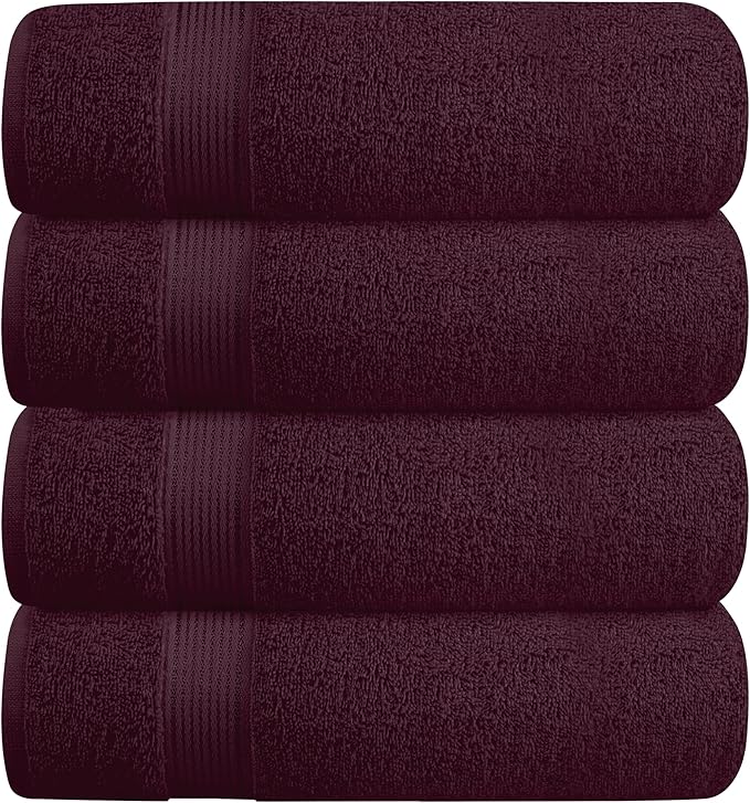 BELZZI Home Ultra Soft 4 Pack Oversized Bath Towel Set 27x54, Cotton Compact Bath Towels, Highly Absorbant Eco-Friendly Quickdry & Lightweight Towel, Ideal for Gym Travel Camp Pool - Burgundy