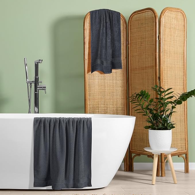 BELZZI Home Ultra Soft 4 Pack Oversized Bath Towel Set 27x54, Cotton Compact Bath Towels, Highly Absorbant Eco-Friendly Quickdry & Lightweight Towel, Ideal for Gym Travel Camp Pool - Charcoal Grey