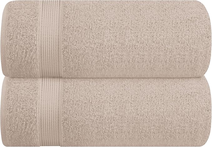 Belizzi Home Cotton 2 Pack Oversized Bath Sheet 35x70, Large Bath Sheet, Ultra Soft, Absorbent, Compact, Eco-Friendly, Recyclable, Quick Drying and Lightweight Towel - TAN