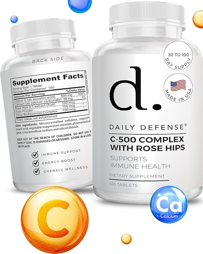 - Empower Your Immune System: Boost your immune system with Daily Defense C-500 with Rose Hips! Packed with 500 mg vitamin C and the added power of rose hips, these tablets provide a natural, potent way to defend against seasonal changes and everyday triggers.
