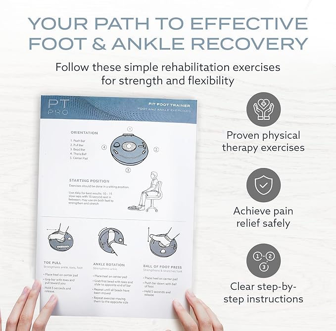 - PATENT PENDING DESIGN: The PT Pro Fit Foot Trainer utilizes a first-in-class multifuctional design, able to address both foot and ankle issues. Each exercise targets different muscle groups to promote strength and flexibility.Skip the PT appointment with this ideal rehab solution for use at home, under desk, or on the go.