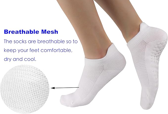 - Material: Women Non Slip Grippy Yoga Socks are made of soft cotton and polyester, comfortable and elastic. silicone gel grips on the bottoml. Soft and breathable, moisture-wicking performance keeps your feet dry. You can enjoy perfect stability and bring a good sports experience, and it will not be deformed or broken after exercise or washing.
