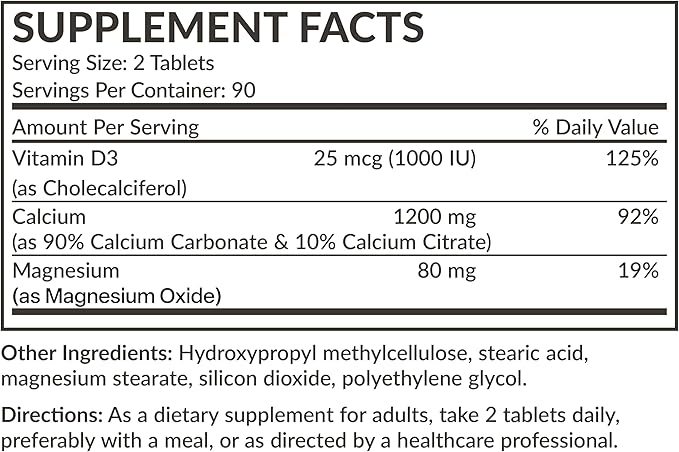 Futurebiotics Calcium 1200 MG Per Serving Sustained Release with Vitamin D3 1000 IU Per Serving Non-GMO, 180 Vegetarian Tablets