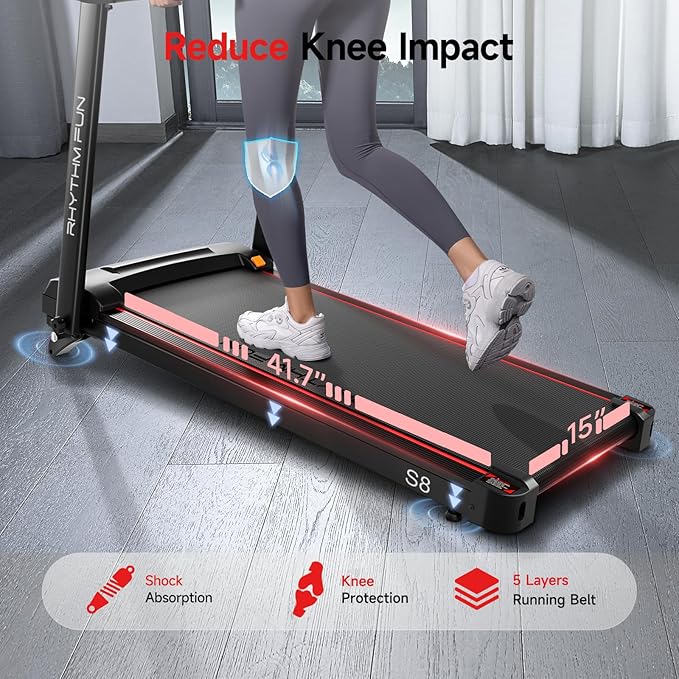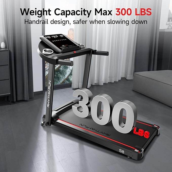 RHYTHM FUN Treadmill with Incline, 8.0 MPH Treadmills for Home with 8% Incline, Foldable Treadmill with Handles, Low Noise Walking Pad for 300 lbs