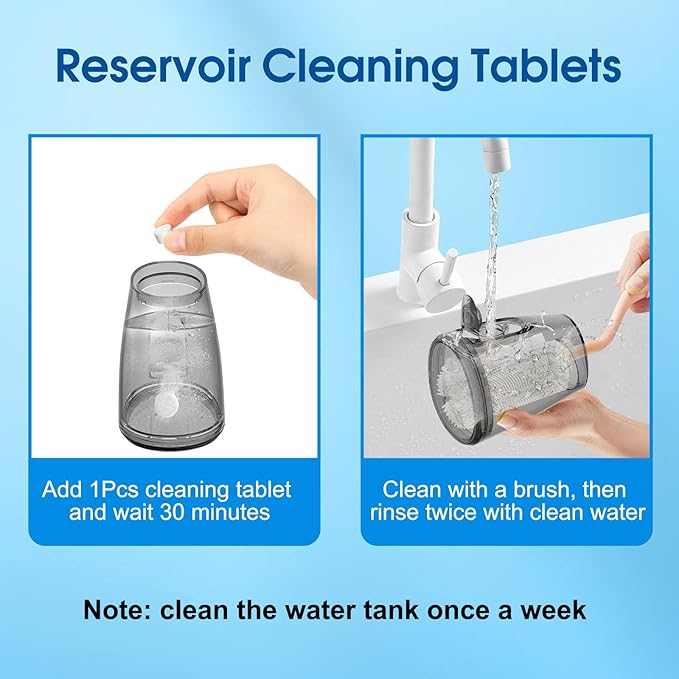 - 300ML Large Reservoir - No Frequent Refills Needed: This water jet flosser features a 300ML large-capacity reservoir, providing enough water for thorough cleaning without the need for frequent refills. The reservoir is easy to detach for comprehensive cleaning. Its compact design makes it portable, ensuring you can enjoy fresh and healthy teeth at home or on the go