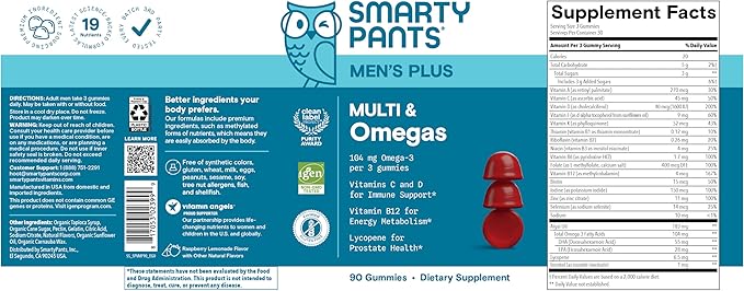 - PREMIUM, SCIENCE-BACKED GUMMY MULTIVITAMIN SUPPLEMENTS FOR MEN: SmartyPants Men’s Plus Multi & Omegas is specifically formulated to help fill average nutrient gaps men may have.