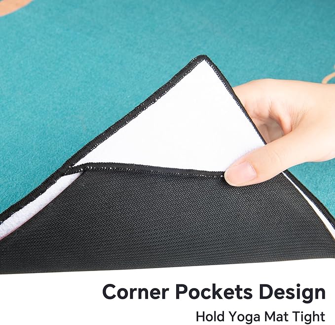 - Corner Pockets & Silicon Spotted Backside: Features 4 corner pockets on the backside, the non slip yoga mat towel helps secure and hold onto the mat firmly. This grip bottom design allows you to focus your mind, body and breath on the yoga practice, without worrying about bunching.