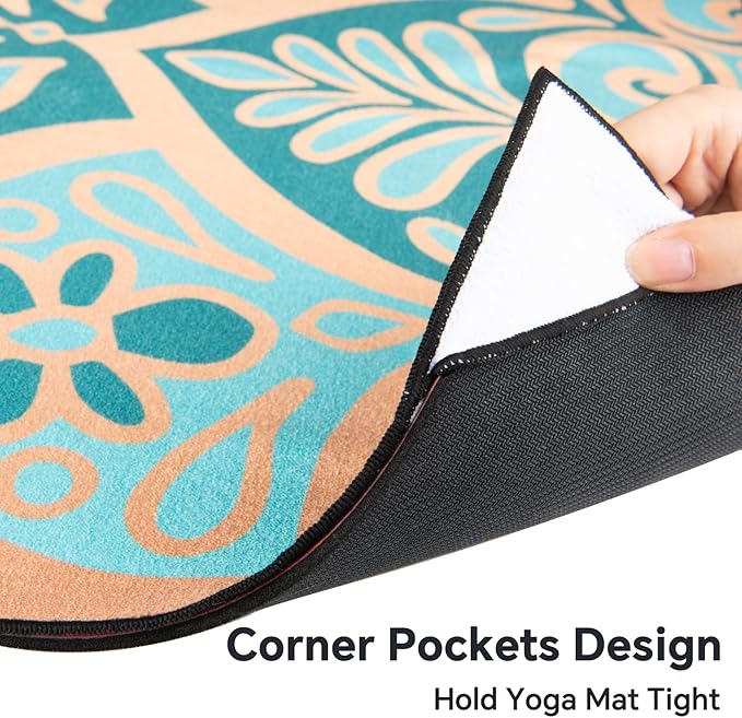 - Corner Pockets & Silicon Spotted Backside: Features 4 corner pockets on the backside, the non slip yoga mat towel helps secure and hold onto the mat firmly. This grip bottom design allows you to focus your mind, body and breath on the yoga practice, without worrying about bunching.