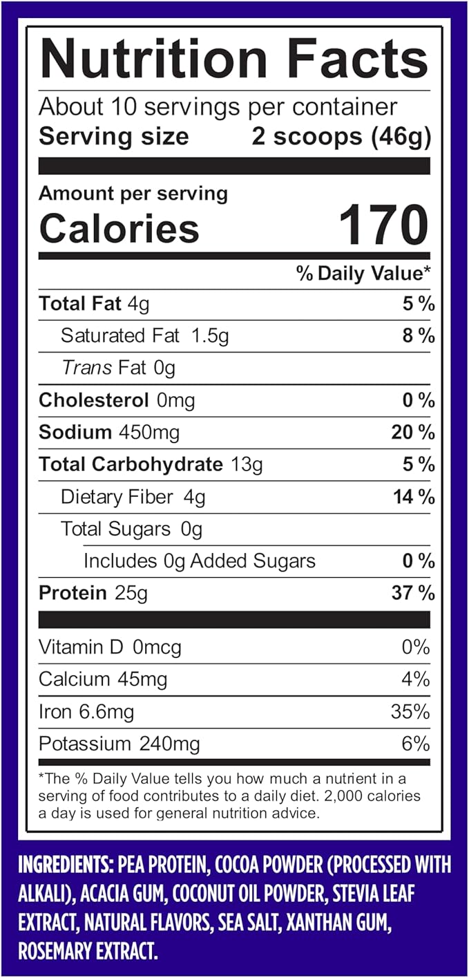 - Each serving contains 25 grams of plant-based protein, Iron-rich and naturally lactose-free