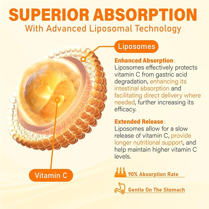 - ENHANCED ABSORPTION WITH LIPOSOMAL & FILLED TECHNOLOGY: Our liposomal vitamin c gummies use phospholipid blend from sunflower and lecithin to create liposomes that effectively deliver vitamin C directly. This process prevents vitamin C oxidation, maximizing absorption & bioavailability while is gentle on the stomach. Filled technology encapsulates nutrients in the center of gummy, protecting them from air & heat, resulting in a 5X MORE ABSORPTION than standard gummies.