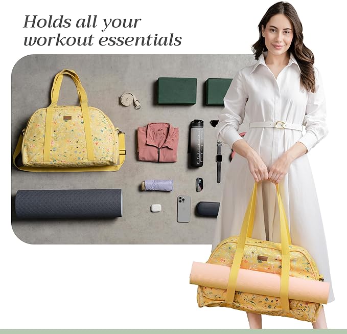 - Smart Size & Yoga Mat Holder: At 20.5"x12"x6.5", this bag fits travel essentials and secures your yoga mat (¼” to 1” thick) with adjustable shoulder strap. Two durable twill tape shoulder handles make it easy to carry. Yoga mat not included