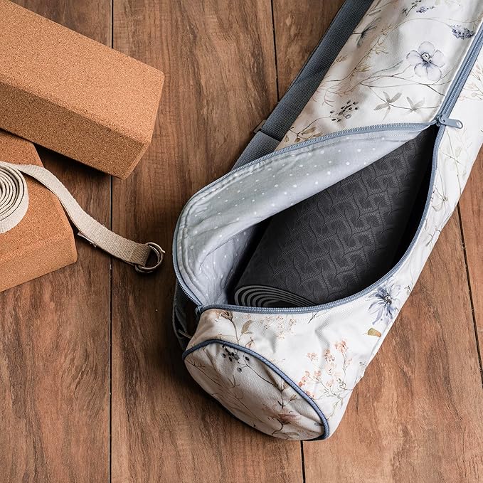 - Perfect Fit for Most Mats: Sized 27.5" long x 6.5" diameter, this yoga tote bag fits most standard mats from ¼" to 1" thick. The zip closure secures your mat, while the adjustable shoulder strap makes this a comfortable yoga bag for travel or commute