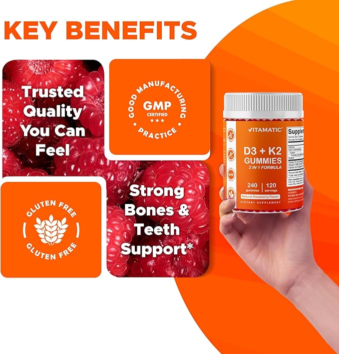 Vitamatic Vitamin D3 K2 with Calcium Gummies - 240 Count - Non-GMO, Gluten Free