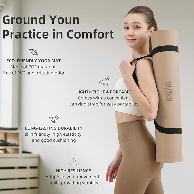 - 【Premium Thick Yoga Mat for Enhanced Comfort】Experience superior cushioning with our 8mm (1/3") thick yoga mat, designed to protect joints during intense workouts. Ideal as a gym mat or Pilates pad, its rebound-enhanced surface provides optimal support for yoga, HIIT, and floor exercises