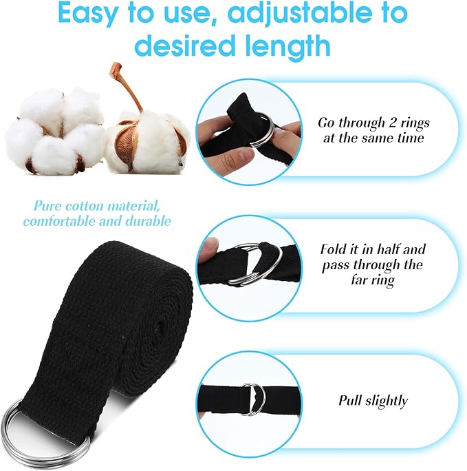 - Wide Application: the yoga stretching strap for exercise is good for yoga, Pilates, daily exercise, dance, physical therapy, gym class, outdoors and more, no matter the pose, experience or intensity, these belt straps are here to facilitate your Yoga sessions, help deepen stretches, assist with hard poses, bring you a good experience
