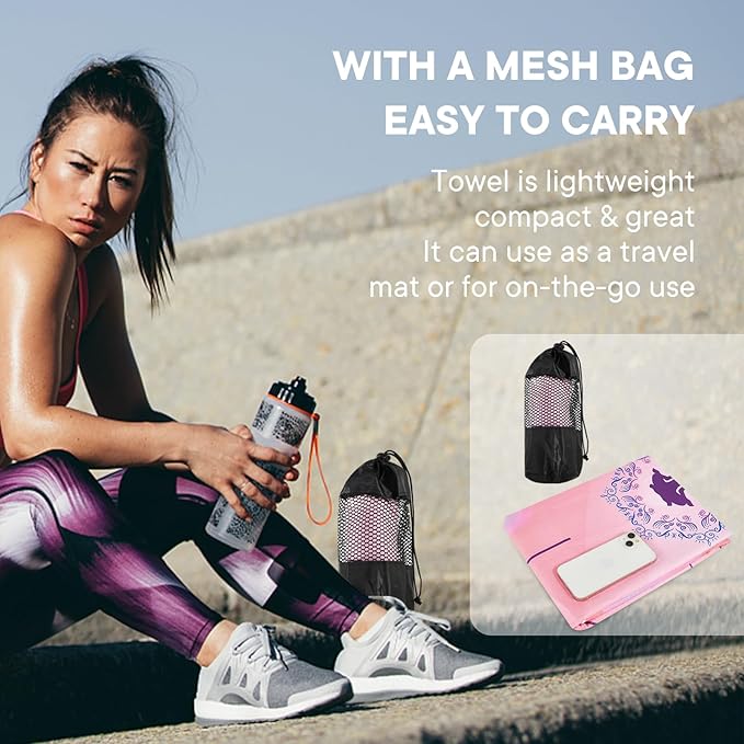 - HYGIENIC AND HEALTHY: By using this yoga towel on top of the studio mat, you can put a hygienic layer between you and the mat. This will increase your confidence and remove your worries about whose sweat and germs you'll be practicing on. It's lightweight, easy to carry, and fits nicely in your bag.