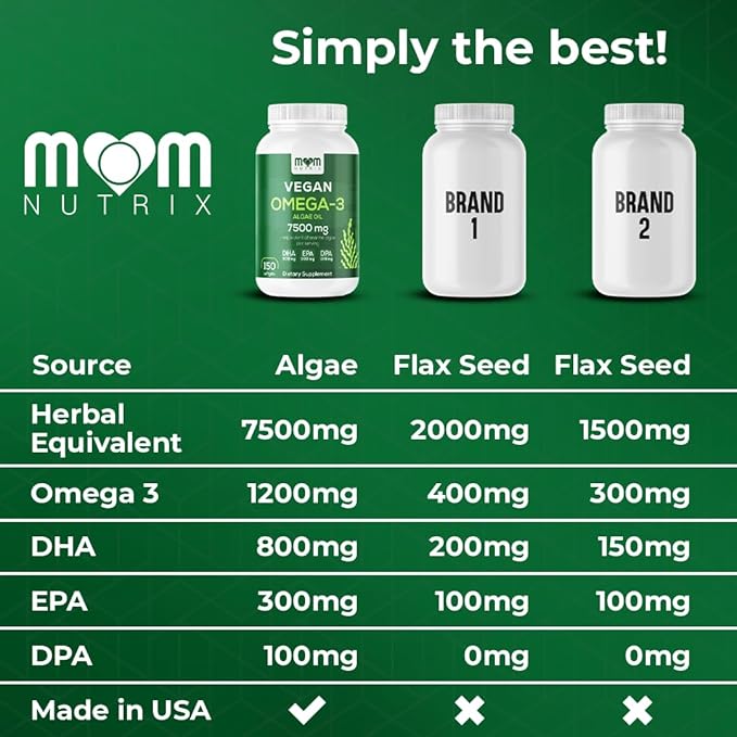 - ✅ ALGAE OIL BENEFITS - MOM Nutrix algae supplement supports your heart, brain, and eye health and bolsters your immunity. By promoting joint comfort and flexibility, it helps you stay active throughout the day and relaxed all night.