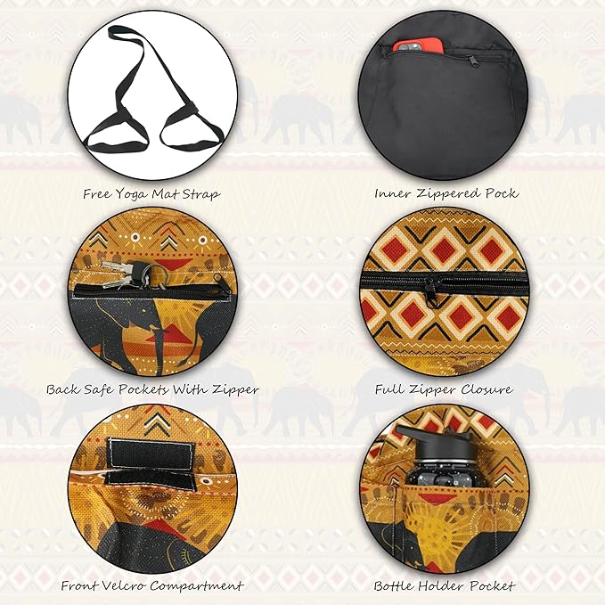 - Design: The shoulder straps are designed without button fasteners, and the entire yoga bags are hand-sewn, with beautiful elephant patterns printed on both sides, rich colors and very unique, practical and beautiful multi-functional yoga bag is a great gift for yoga lovers