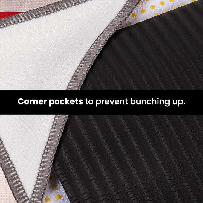 - Corner Pockets for Stability: Innovative corner pockets anchor the towel to your mat, preventing bunching and shifting, so you can stay focused on your poses, not the bunches.