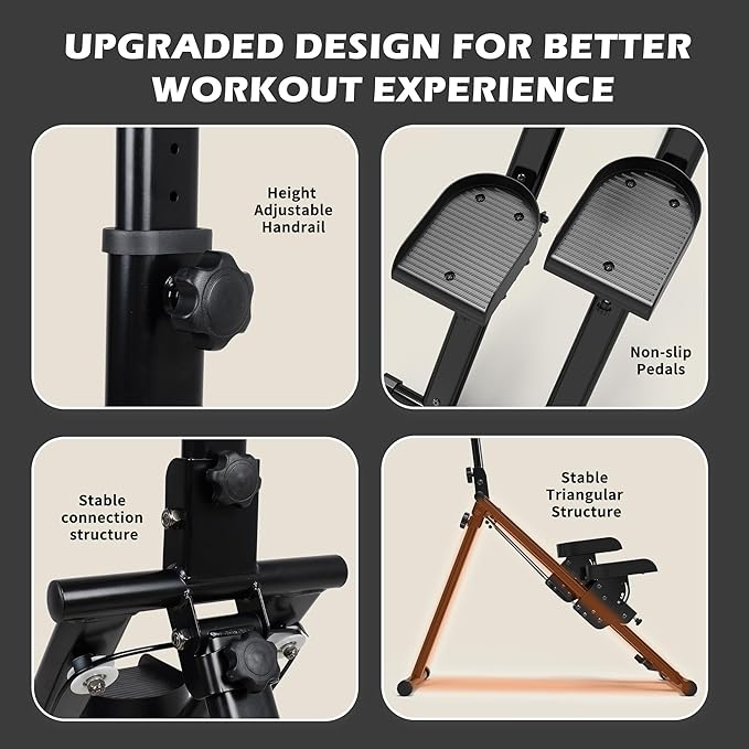 - Safe and Durable Triangular Construction: This stair climber is built to last with a sturdy frame that can hold up to 300 pounds. Non-slip pedals and firm handles ensure safety and stability, even during intense workouts.