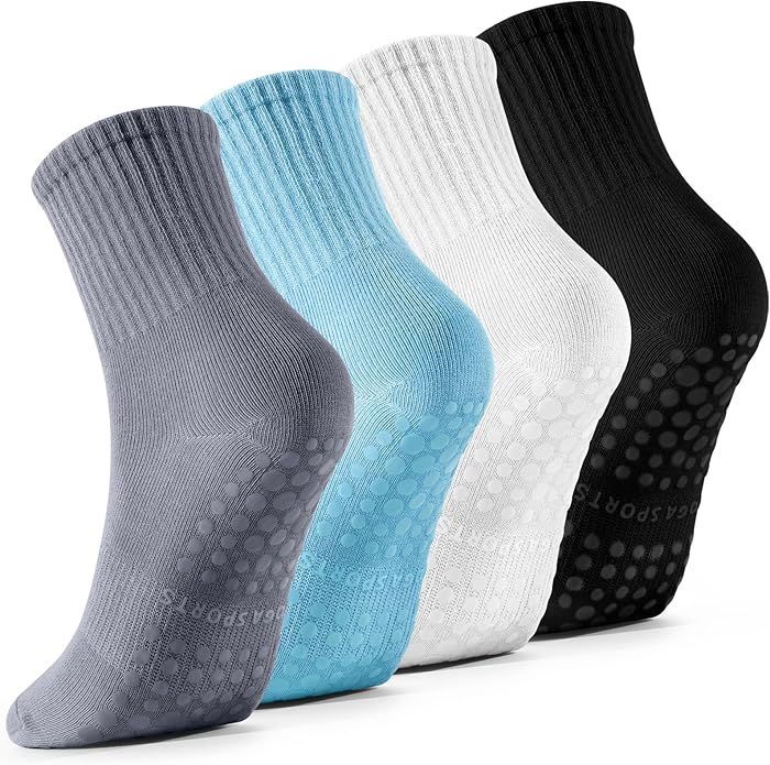 4 Pairs Pilates Socks with Grips for Women, Barre Yoga Grippy Socks, Womens Non Slip Pilates Crew Sticky Socks