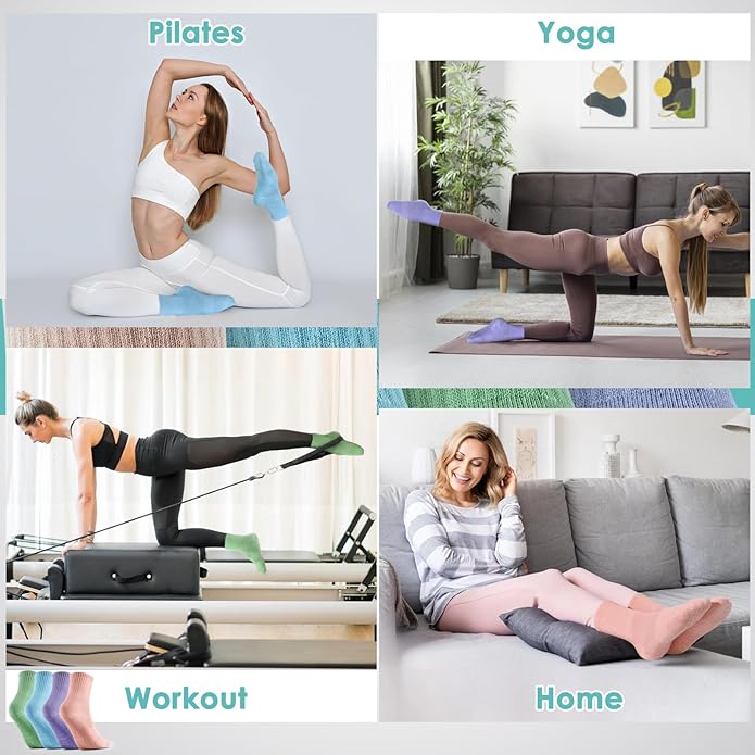 - NON-SLIP SOCKS: Featuring a non-slip bottom with silicone grip dots, these Pilates grip socks provide superior traction on floors and mats, preventing slipping and ensuring comfort during daily activities or intense workouts, whether at home or in the gym
