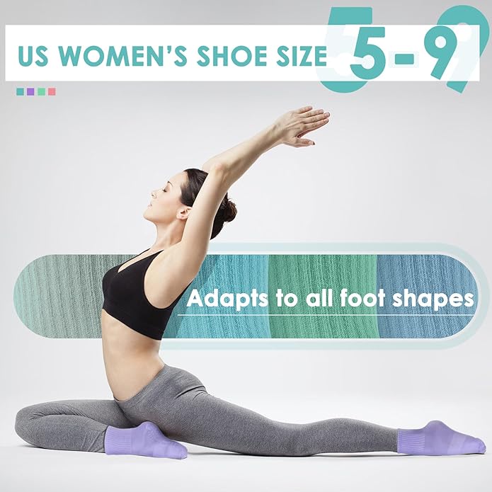 - FOR MULTIPLE ACTIVITIES: Comfortable and odor free non slip socks, ideal for yoga, pilates, ballet, gym workouts, or indoor lounging, these pilates socks with grips for women are suitable for foot sizes from size 5 to 9. Machine washable and durable for long-lasting use