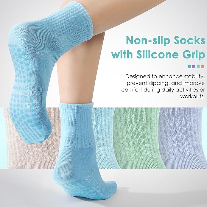 - NON-SLIP SOCKS: Featuring a non-slip bottom with silicone grip dots, these Pilates grip socks provide superior traction on floors and mats, preventing slipping and ensuring comfort during daily activities or intense workouts, whether at home or in the gym