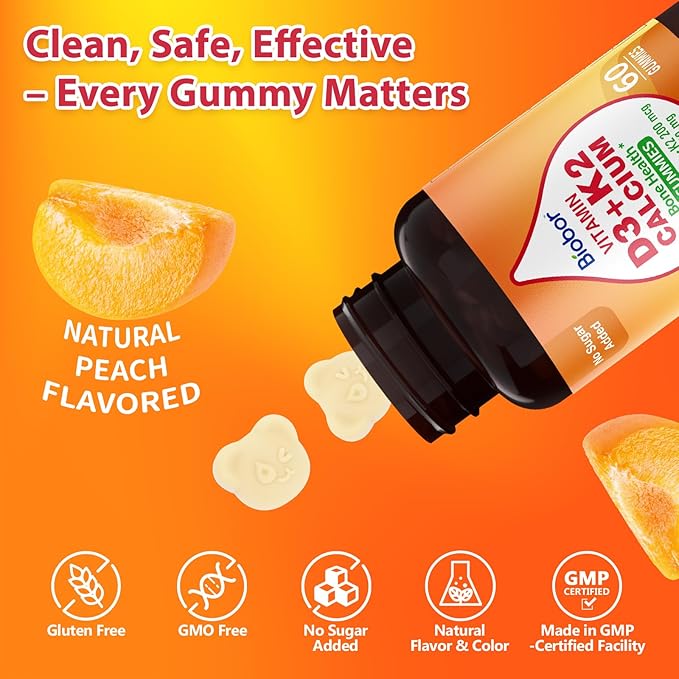 - Delicious Yellow Peach Flavor: Enjoy a tasty and enjoyable way to take your vitamins with our natural yellow peach flavor. These gummies make bone support a delicious daily habit without the need for pills or powders.