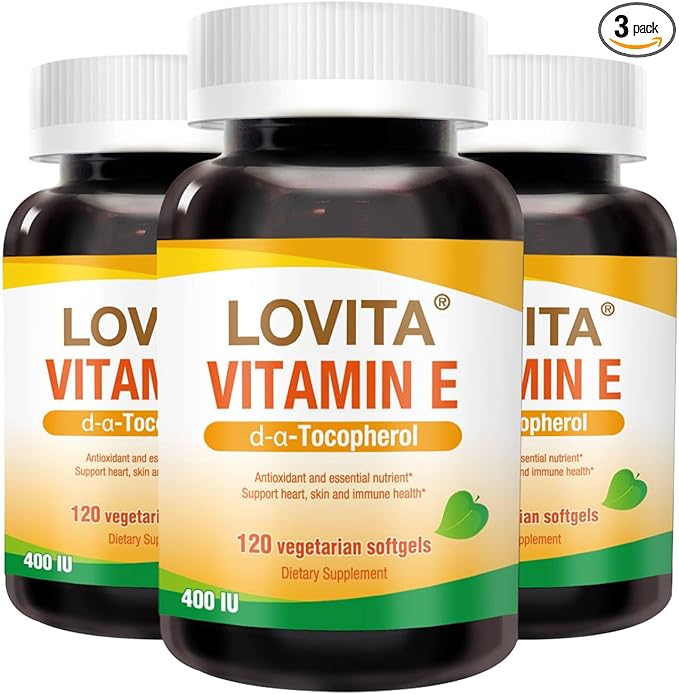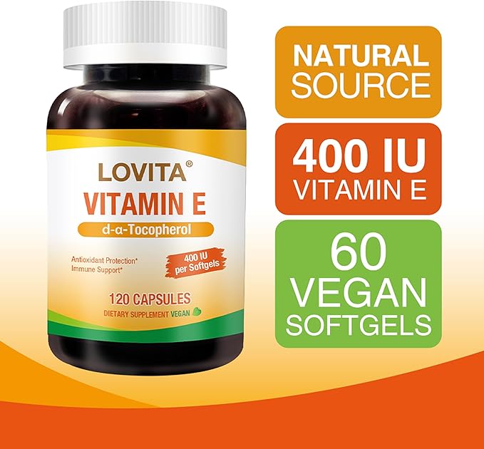 - 【STRONG HEALTH SUPPORT】- Lovita Vitamin E Capsules provide essential antioxidants that help against free radicals, which can contribute to oxidative stress causing premature aging of cells in skin, hair, and brains.