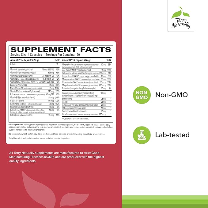 Terry Naturally Clinical Essentials - Supplement to Aid Bone, Cardiovascular & Immune Health - Supplement with Chelated Minerals - Supplement with B-Vitamins & Vitamin C - 120 Capsules