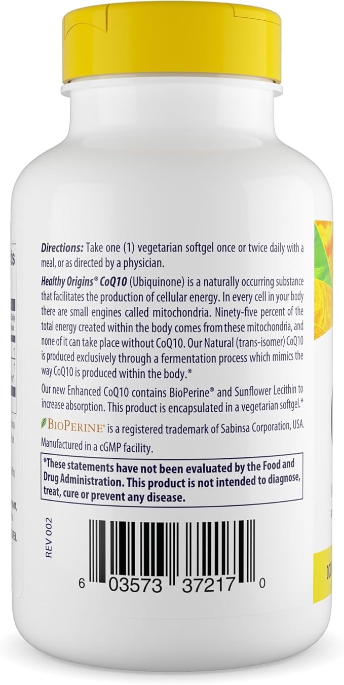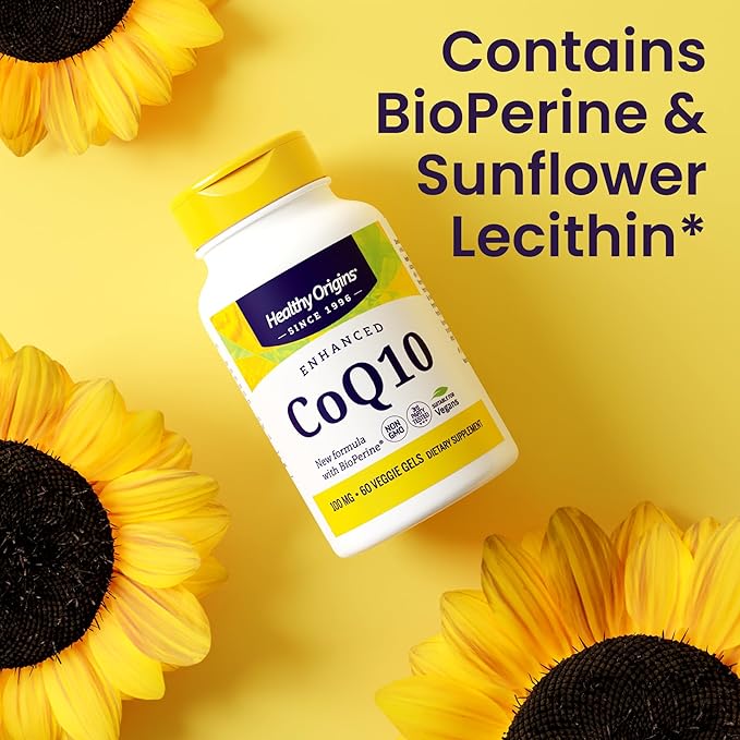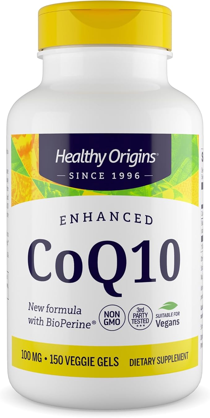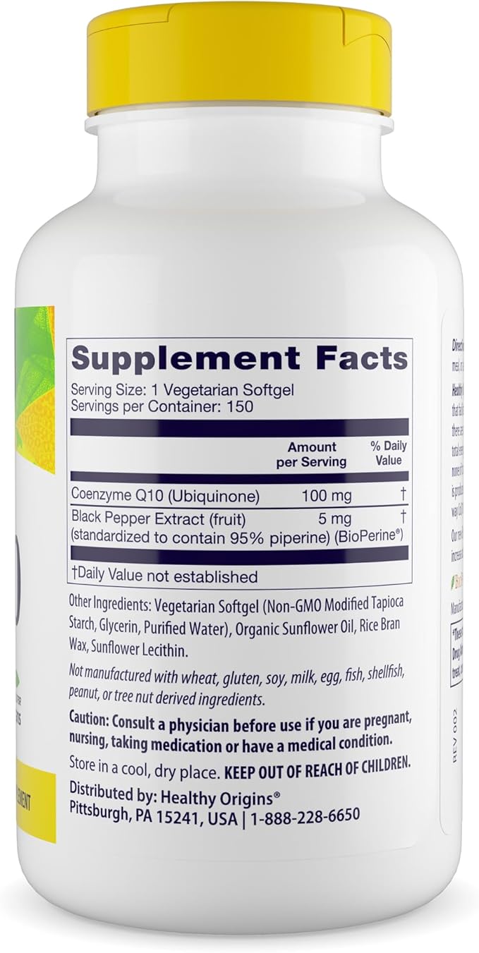 Healthy Origins Natural Enhanced CoQ10 (BioPerine®), 100 mg - Heart Health & Energy Supplement - Gluten-Free & Non-GMO Supplements, with BioPerine & Sunflower Lecithin ((Pack of 1) 150 Veggie Gels)