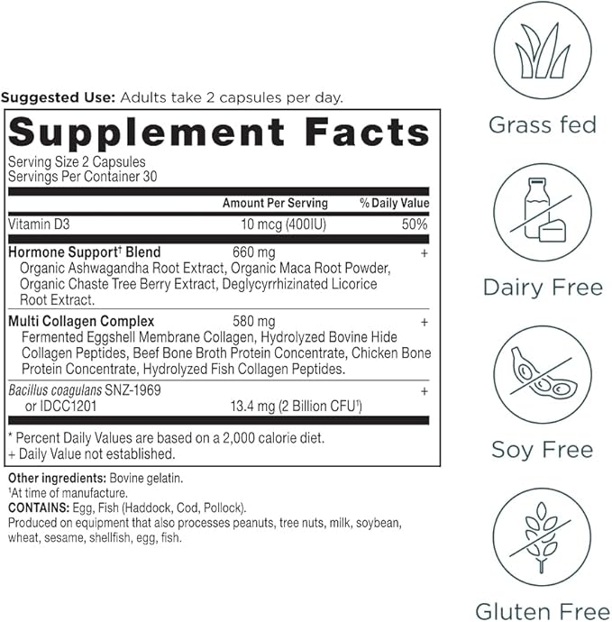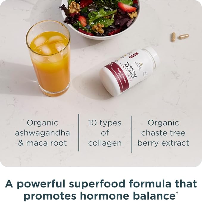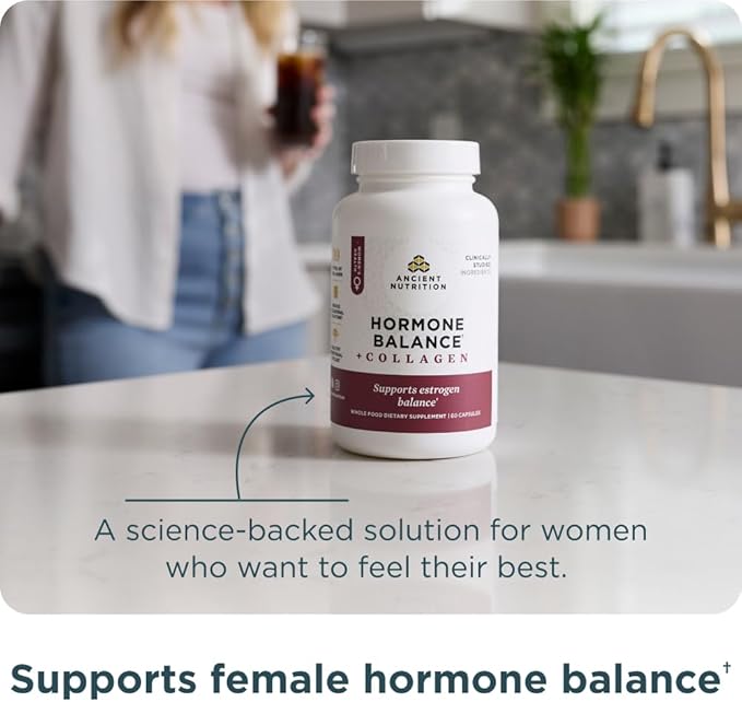 Ancient Nutrition Hormone Balance + Collagen Supplement, Hydrolyzed Collagen Peptides, Key Clinically Validated Ingredient to Support Balanced Hormones and Boost Energy, 60 Capsules