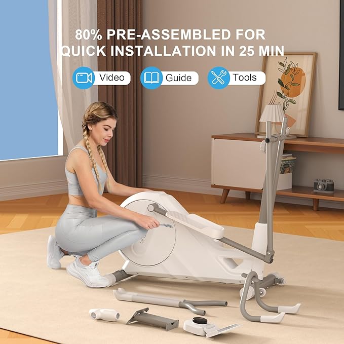 - 10-MINUTE ASSEMBLY&WORRY-FREE SUPPORT:Our Elliptical Exercise Machine for home arrives 85% pre-assembled,so you can set it up in just 15 minutes.We offer a two-year parts replacement&are always here to help—just reach out via Amazon with any questions.