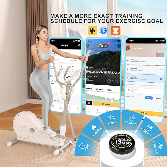 - APP-CONNECTED&REAL-TIME PROGRESS TRACKING:Track your progress in real-time with our advanced digital monitor, built into this elliptical exercise machine. Compatible with KINOMAP and ZT apps, it displays time, speed, distance, calories, pulse, and more. Ideal for customizing work
