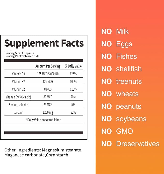 - Primary Supplement Type : Vitamin B2, Vitamin B9, Vitamin D3, Vitamin K2