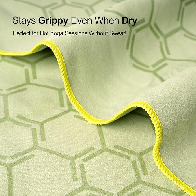 - NON-SLIP & SKID-LESS: The yoga towel, with its honeycomb design, ensures a slip-free practice. Made of soft microfiber, it features a double-sided embedded silicone pattern that grips the mat or floor, providing a smooth, non-slip surface without bumps. This textured surface maintains traction even when wet, allowing you to focus on your practice.