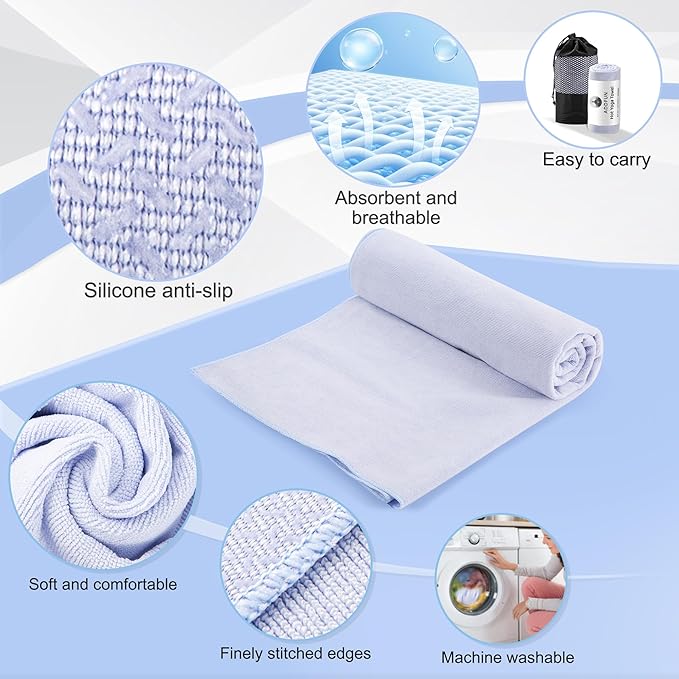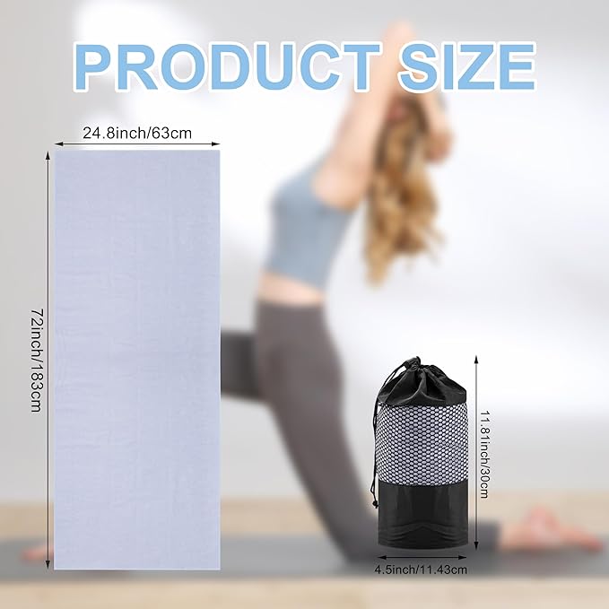 - LIGHTWEIGHT AND PORTABLE: The hot yoga towel non slip measures 72''X24.8'' (183*63cm) , and comes with a durable storage mesh bag for easy storage and carrying. This yoga sweat towel is not only suitable for yoga mats and gyms, but also can be used in outdoor picnics or beach trips; one non slip yoga towel is multi-purpose to meet the diverse needs of home and outdoor