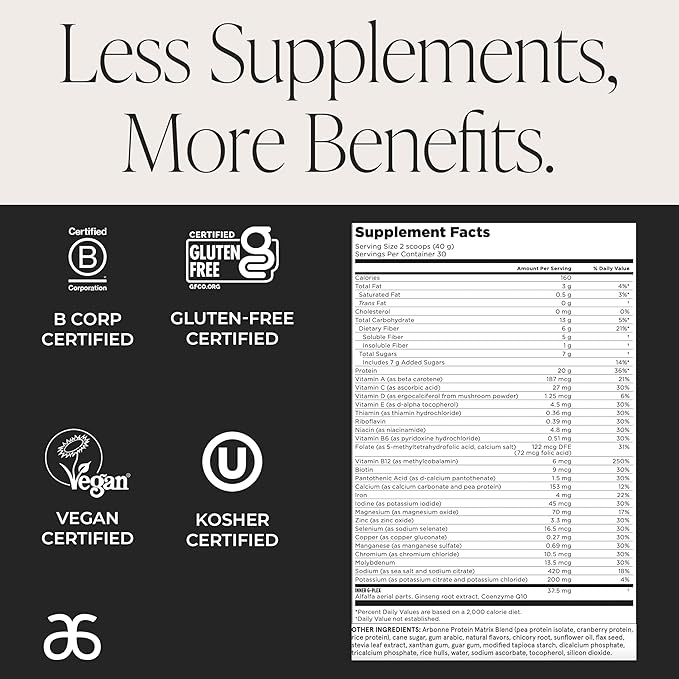 - Plant-Based Protein Blend - Each serving delivers 20g of easy-to-digest protein sourced from Peas, Cranberries, and Rice, supporting muscle health and overall well-being.