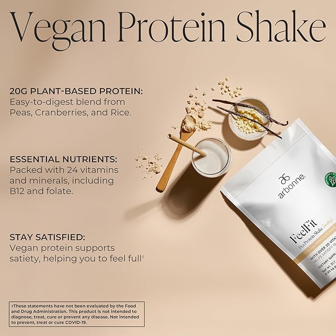 Arbonne Feelfit Pea Protein Shake - Daily Supplement Powder, Vegan Protein for Support of Overall Health, Energy and Well-Being, Vanilla