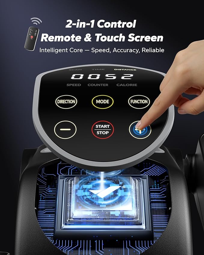 - Dual Controls for Easy Use: Easily control your workout using the touch screen or remote. The LED display shows time, distance, speed, counter, and calories in real time, so you can track your progress easily with this seated pedal exerciser. Perfect for seniors and anyone sitting at a desk all day, this elliptical machine offers a convenient and effective workout
