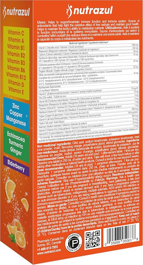- Special Ingredients : 1000 mg of Vitamin C, Zinc, Copper, Elderberry, Echinacea, Turmeric, Ginger, Manganese, Vitamin A, D, E, and B-complex (B1, B2, B3, B6, B12). 1000 mg of Vitamin C, Zinc, Copper, Elderberry, Echinacea, Turmeric, Ginger, Manganese, Vitamin A, D, E, and B-complex (B1, B2, B3, B… See more