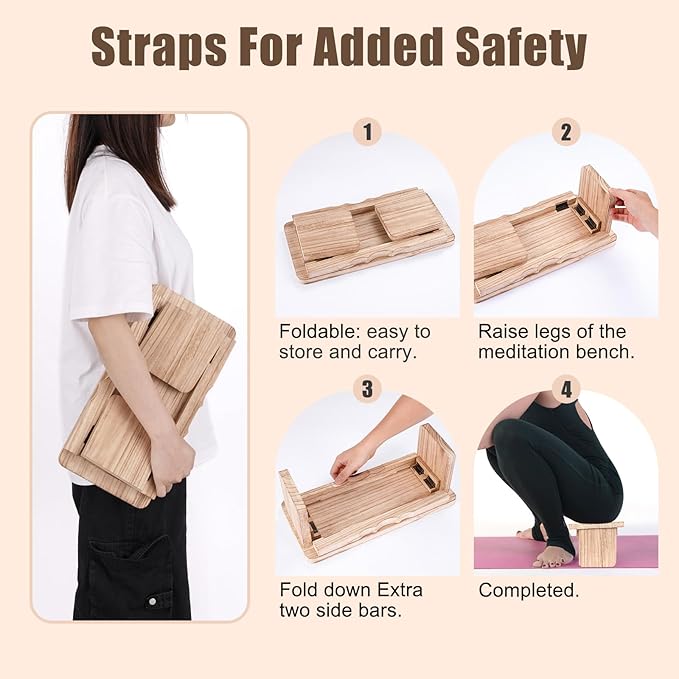 Meditation Bench - Yoga Bench,Wooden Zen Meditation Stool Kneeling Bench for Mindfulness Practice Tea Ceremony and Relaxation Ergonomic Design for Comfort and Support Household,Light Wood